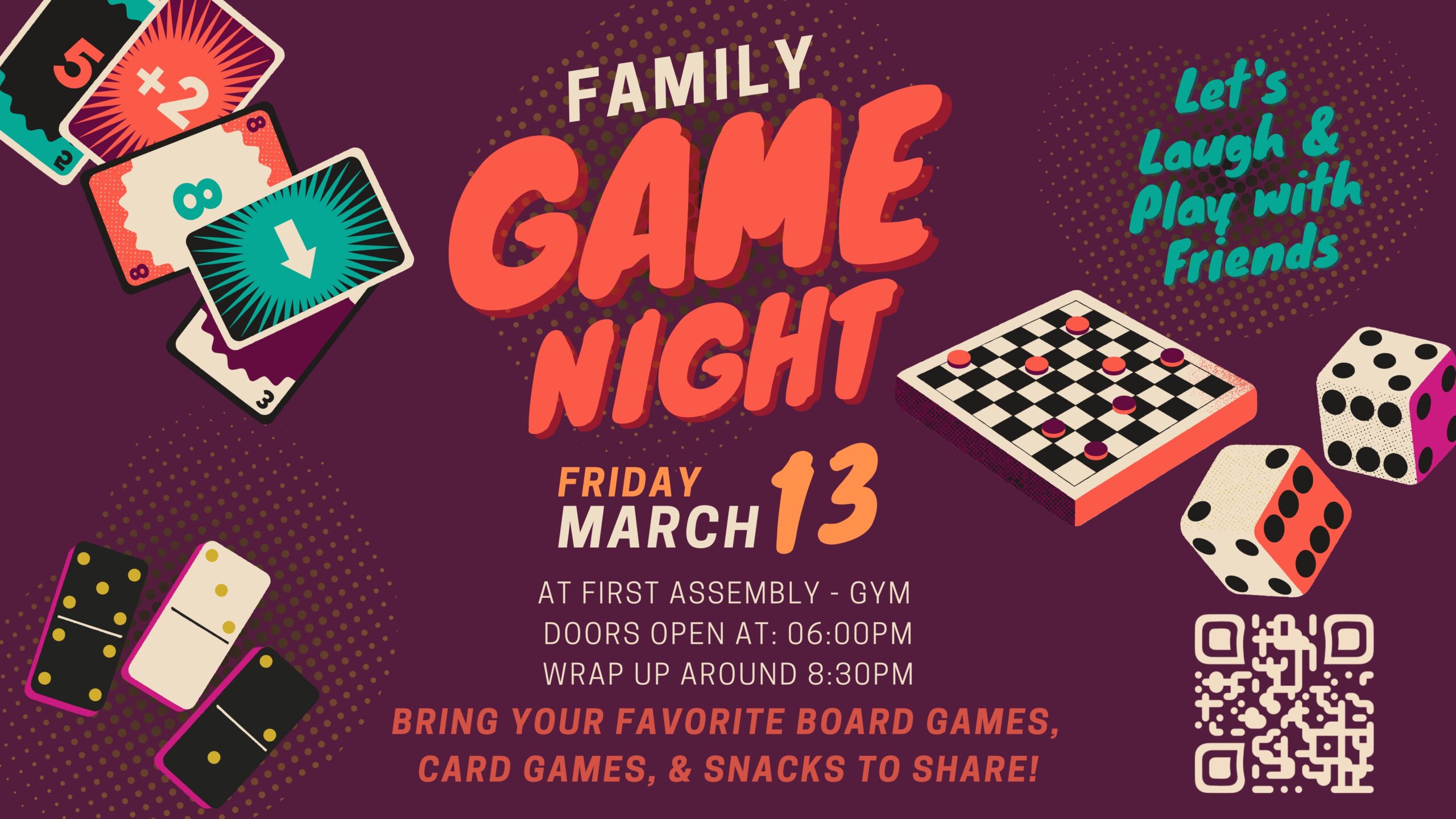 Join us for a super fun night of family games! Bring your favorite board game, card game, and a snack to share. This event is for all ages.
